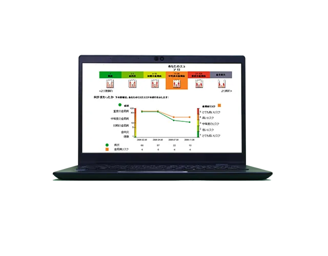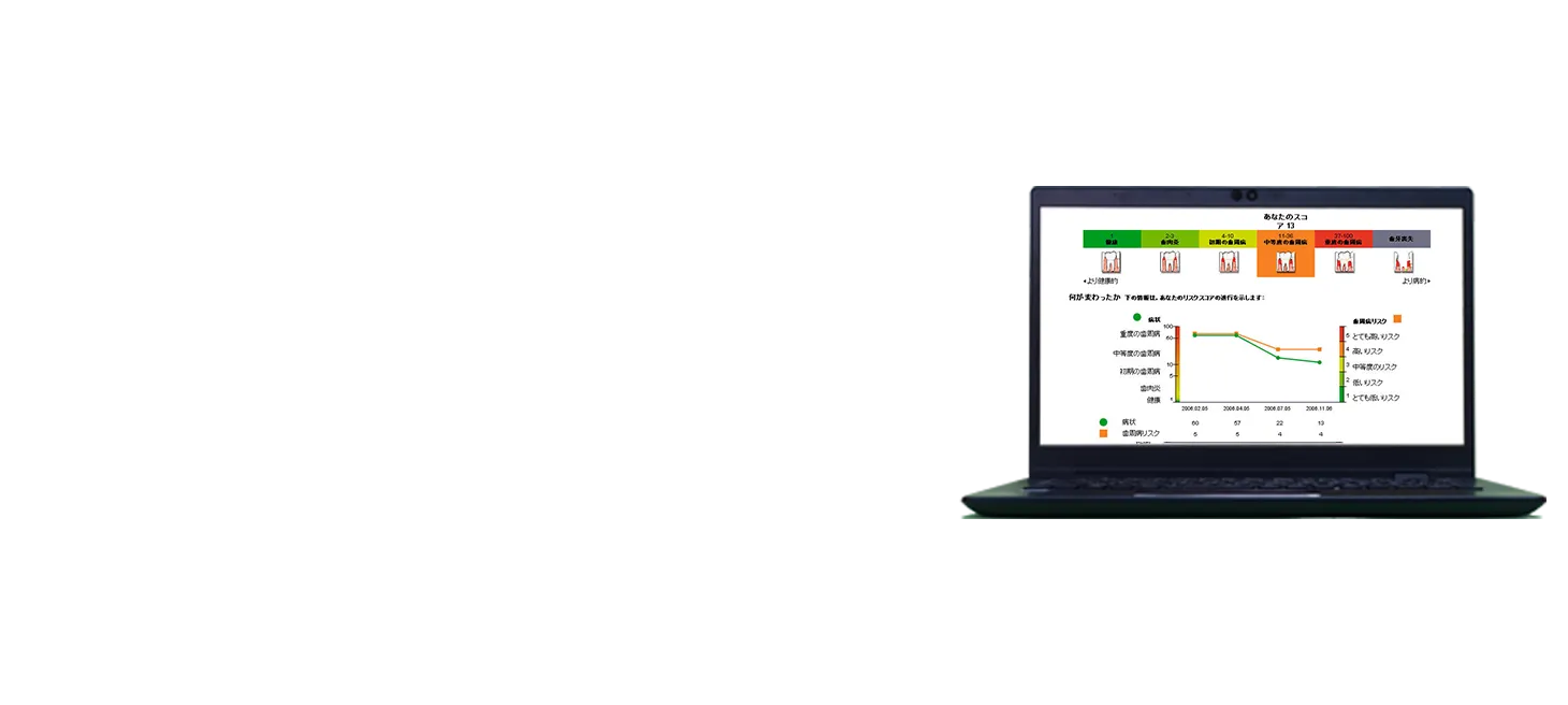 歯周病のリスクと症状を、未来・現在・過去にわたって視覚化。